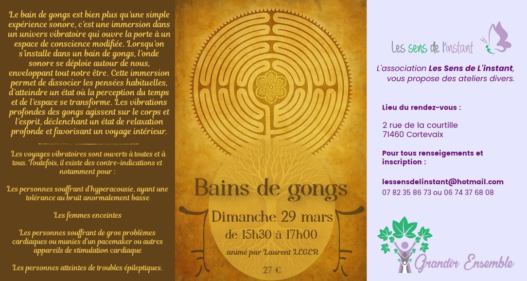 Les vibrations profondes des gongs agissent sur le corps et l’esprit, déclenchant un état de relaxation profonde et favorisant un voyage intérieur.