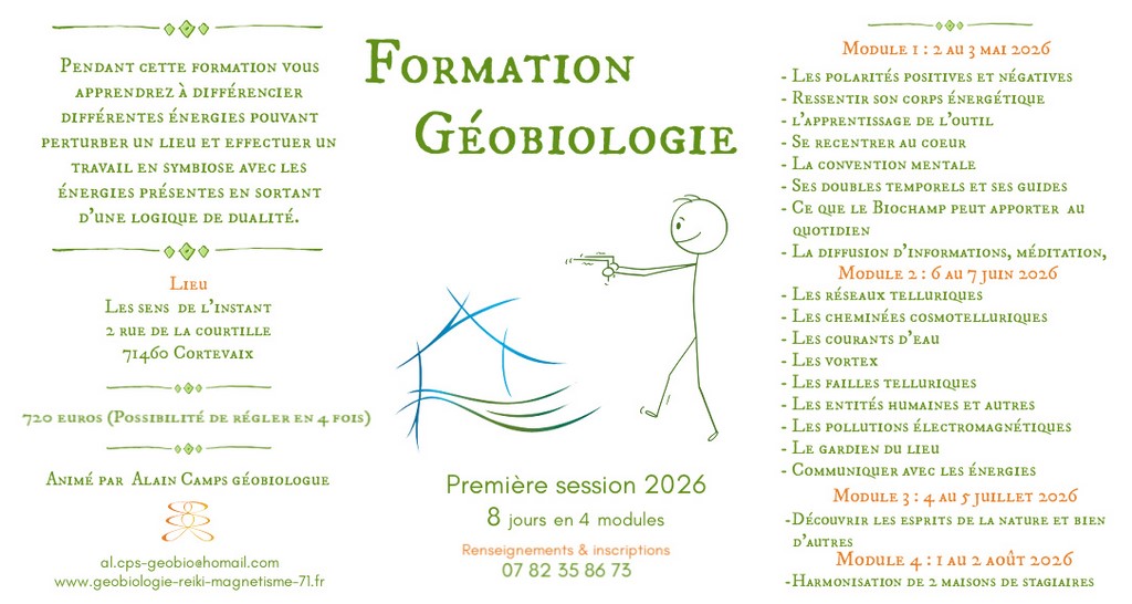 Cette formation est une ouverture sur le monde de l'invisible, vous apprendrez à ressentir et à communiquer avec les énergies du lieu (Et autres) , à effectuer un travail en symbiose avec elles en sortant d'une logique de dualité.