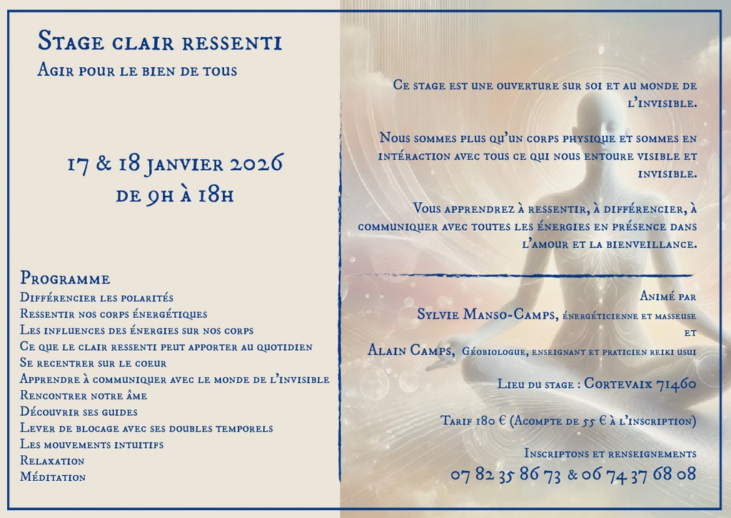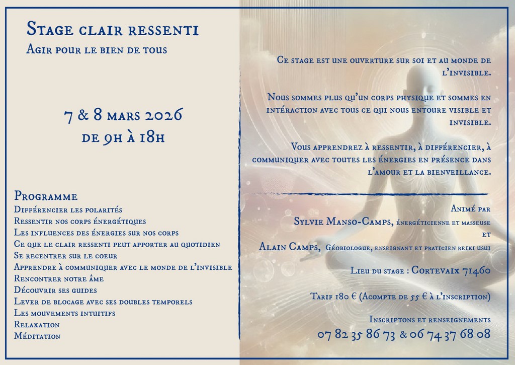 Stage clair ressenti perfectionnement11 & 12 octobre