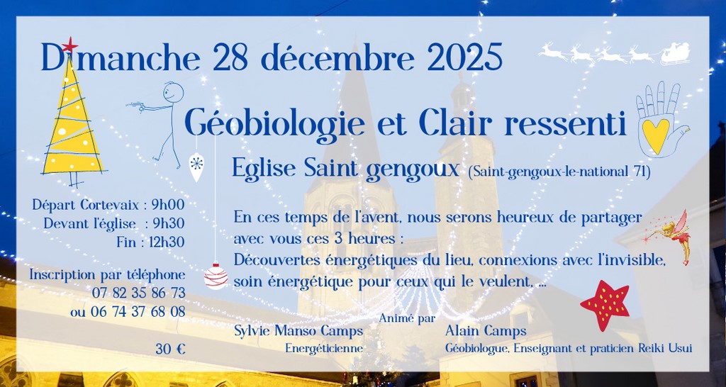 Pour cette sortie nous partons à Saint-Gengoux-Le-National (71460) pour découvrir et effectuer un travail énergétique (Soins, etc...) et de coévolution avec différentes énergies du lieu, esprits de la nature, esprits spirituels, etc...) Départ de notre lieu (Cortevaix) à 9h00 ou RV devant l'église de Saint Gengoux à 9h30.